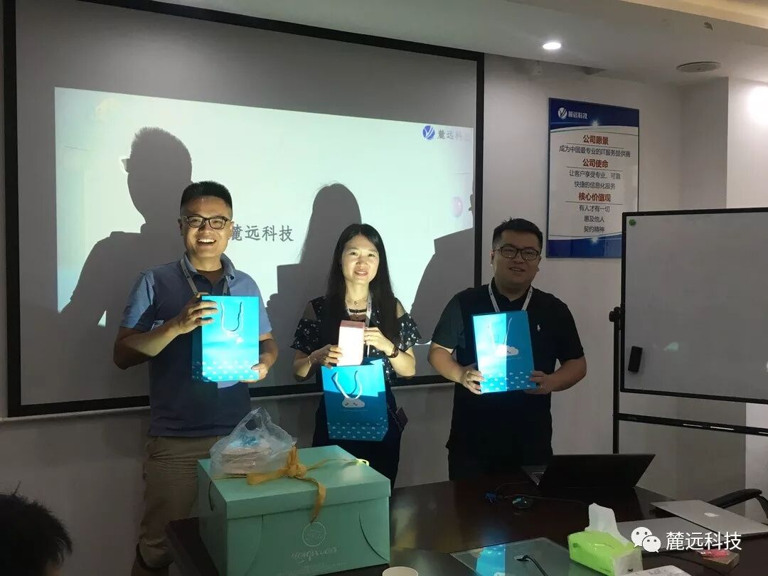 培訓結束後,公司為(wèi)七月(yuè)過生(shē≠• ng)日(rì)的(de)三位同事(shì)統一(yī)舉辦了(le)溫馨的(₩Ω♠de)生(shēng)日(rì)會(huì)。